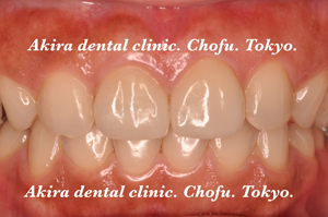上顎前歯2本の歯にジルコニアオールセラミッククラウンによる被せ物で修復いたしました。