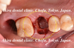 保存不可能な部位を抜歯して、インプラント治療などで対応することよりも、可能性が少しでもあるのなら『自家歯牙移植術』の選択を考えてお勧めしました。但し、抜歯対象部が虫歯を放置してしまった経緯もあり、プラークコントロールが良好でなく、親知らずの状態も必ずしも良い状態ではありませんでした。